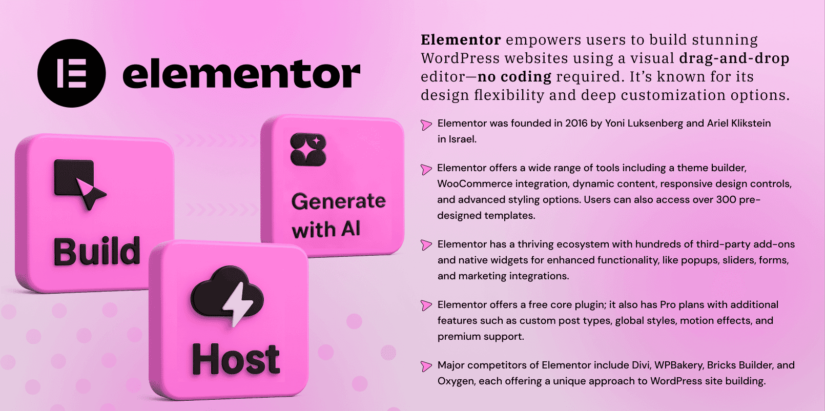 From hosting and security to eCommerce, forms, pop-ups, and marketing tools, Elementor provides everything you need to build, manage, and grow your online presence in one platform.
